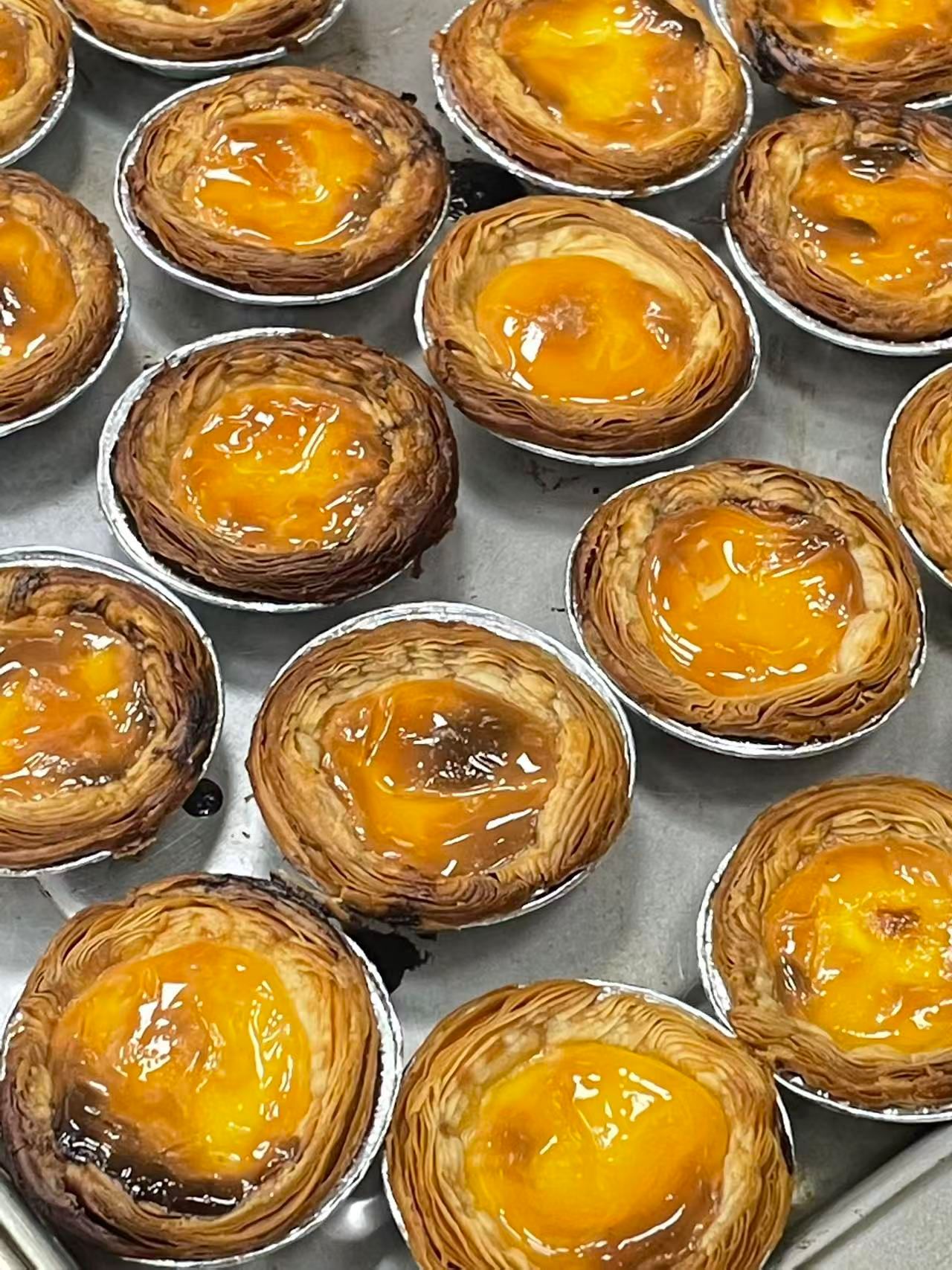 在甜品烘焙区,同学们细致地将蛋液注入蛋挞皮,送入烤箱。随着烤箱温度的升高,蛋挞逐渐变得金黄酥脆,蛋液凝固成滑嫩的蛋挞芯,浓郁的奶香在空气中弥漫。看着自己亲手制作的蛋挞从生胚到成品的蜕变,同学们满是成就感。