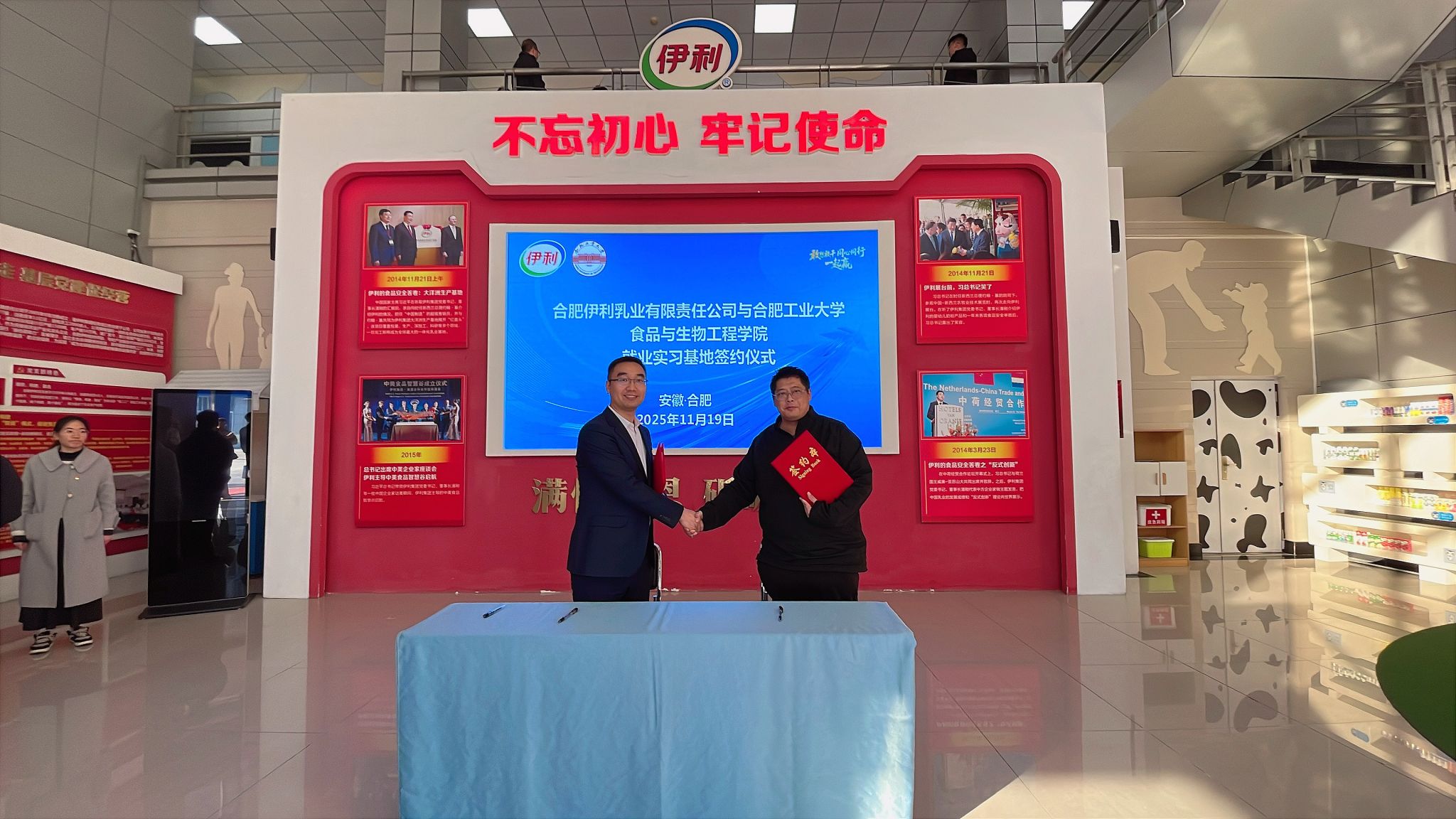 为进一步深化校企合作,推动产学研融合,11月19日下午,合肥工业大学365电子娱乐官方网站师生代表近二十人,赴合肥伊利乳业有限责任公司参观交流,并成功举行“红色1+1+1”共建签约仪式。合肥伊利工厂副总经理王建、食品安全总监王娟、人力资源经理杨帆、365电子娱乐官方网站党委书记孙彩霞、食品科学与工程系党支部书记何述栋等代表出席活动。