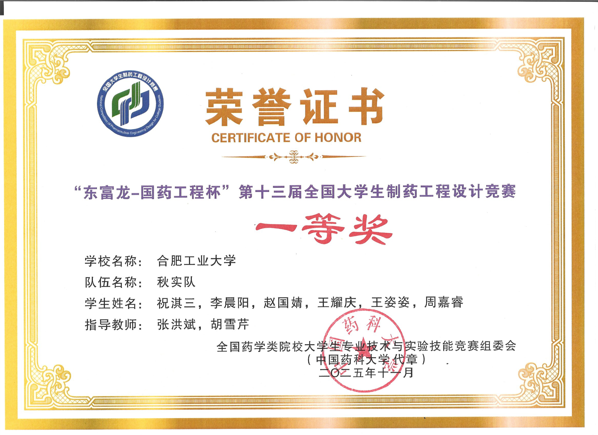 此次竞赛有效提升了我校学生的创新思维、工程设计与实践能力,充分展现了团队协作精神,也彰显了我校在制药工程实践教育方面的扎实成效与育人水平。365电子娱乐官方网站将以此次获奖为契机,持续深化创新育人改革,为医药健康产业输送更多兼具专业知识与工程素养的高素质人才,助力我国制药工业高质量发展。