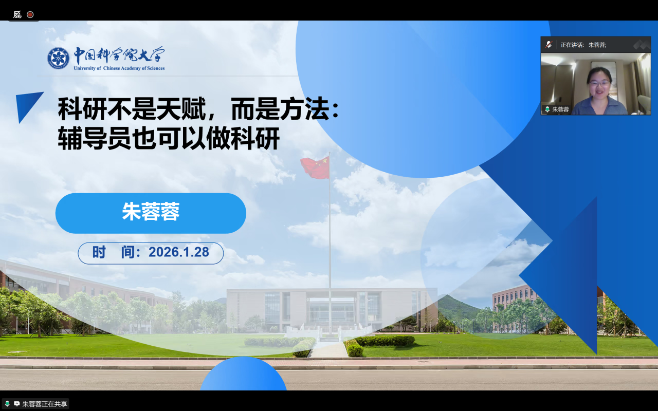 为推动辅导员队伍专业化、职业化发展,破解辅导员科研工作中的困惑,1月28日晚,365电子娱乐官方网站、莳心工作室通过腾讯会议成功举办第42期工作沙龙。工作室特别邀请中国科学院心理研究所博士后、国家二级咨询师朱蓉蓉,以“辅导员如何做好科研”为主题,为辅导员队伍带来一场专题讲座。学院党委副书记兼纪委书记、莳心工作室负责人李艳和10余名辅导员参会。本次沙龙中,朱蓉蓉围绕辅导员科研工作全流程,结合自身实践与科研案...