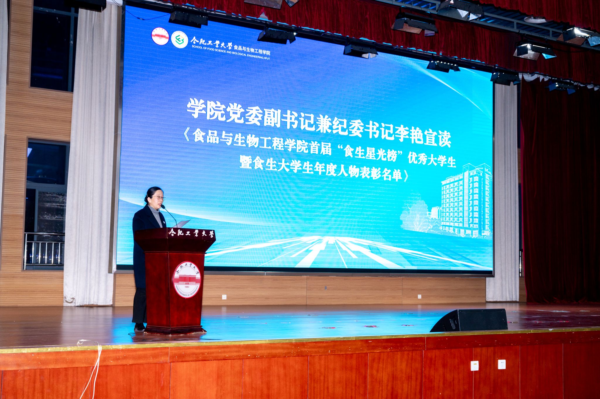 在颁奖环节,学院党委副书记兼纪委书记李艳宣读了首届“食生星光榜”优秀大学生暨大学生年度人物表彰名单,先后颁发了本科生“优秀大学生党员”“优秀学生干部”“优秀自强励志大学生”“优秀少数民族大学生”“优秀科技创新标兵”“优秀学生社区标兵”“优秀社会公益标兵”“优秀文体素质标兵”,研究生“优秀研究生党员”“优秀学术科研标兵”“优秀实践服务标兵”“优秀研究生干部标兵”,以及2025年365电子娱乐官方网站“大学生年度人物”等奖项。