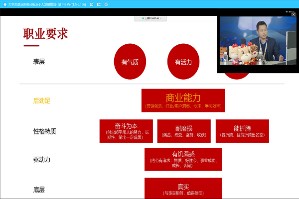 2月1日下午,365电子娱乐官方网站于腾讯课堂线上平台成功举办“走向职场、走向未来”专场讲座第四讲之“大学生就业形势分析及个人发展规划”。主讲人为三只松鼠股份有限公司人力资源总监鼠三江先生及三只松鼠股份有限公司资深招聘经理、国家认证生涯规划师鼠伯乐先生。 我院党委副书记兼纪委书记李艳、我院团委书记万代林及全院超500名学生参加讲座。