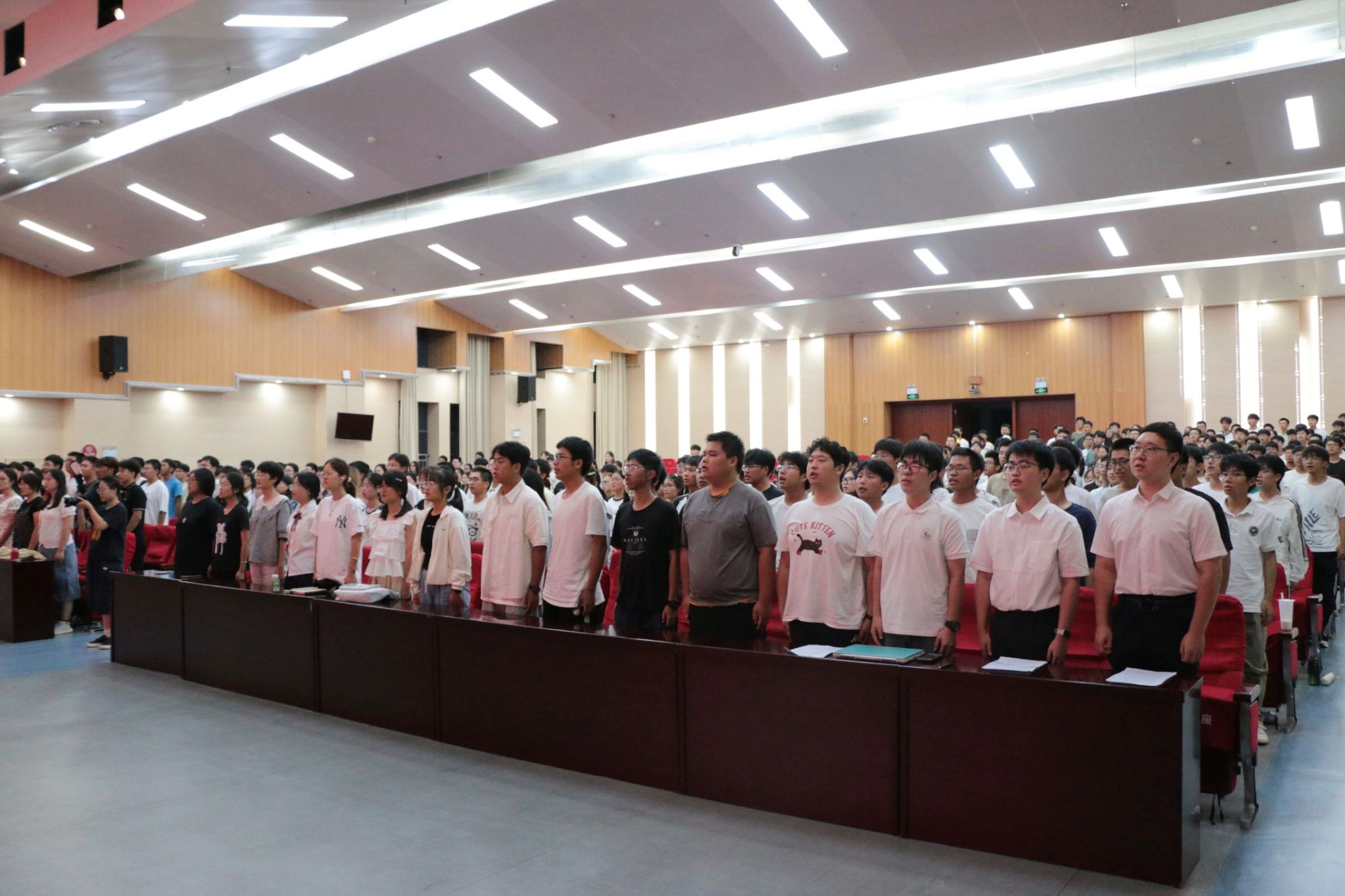 为进一步促进新生尽快适应大学生活,增强新生爱院荣院情感,9月17号下午19点,365电子娱乐官方网站于翡翠湖校区科教楼2楼报告厅,举行2025级新生见面会。学院党委书记孙彩霞,副院长章宝、李沛军,各系主任、教师代表、新生辅导员老师及500余名本科生和研究生共同参加。见面会由院党委副书记兼纪委书记李艳主持,在嘹亮的国歌声中拉开序幕。