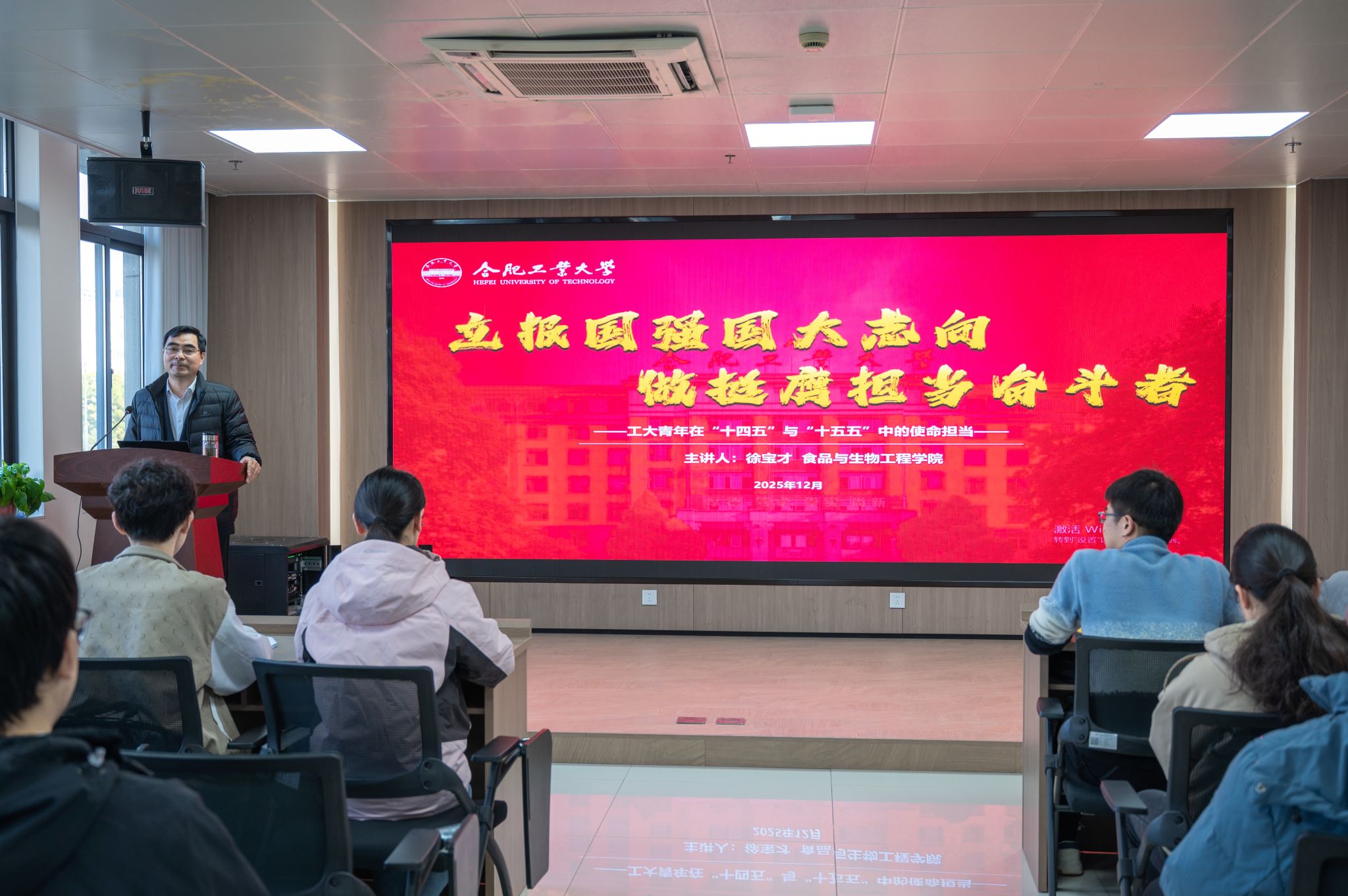 12月5日下午,365电子娱乐官方网站院长徐宝才教授作客“食生之声”青年大讲堂第4讲。在食生楼306,面向食品科学与工程专业80余名本科生,讲授了“立报国强国大志向,做挺膺担当奋斗者”主题党课。活动由学院本科生第一党支部书记葛永莉主持。授课中,徐宝才带领全体学生全面梳理我国“十四五”期间取得的历史性成就;重点解读中国共产党第二十届中央委员会第四次全体会议公报和《中共中央关于制定国民经济和社会发展第十五个五年...